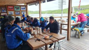 Kongekrabbesommer14 Legg igjen en kommentar / Av Pasvikturist / 23. June 2022 King crab meal after a King crab safari on the river